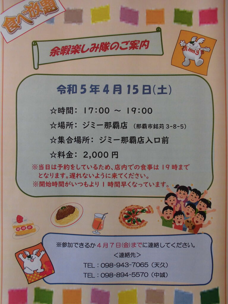 次回余暇隊は4月15日(土)です。みなさん、またお会いしましょう♪