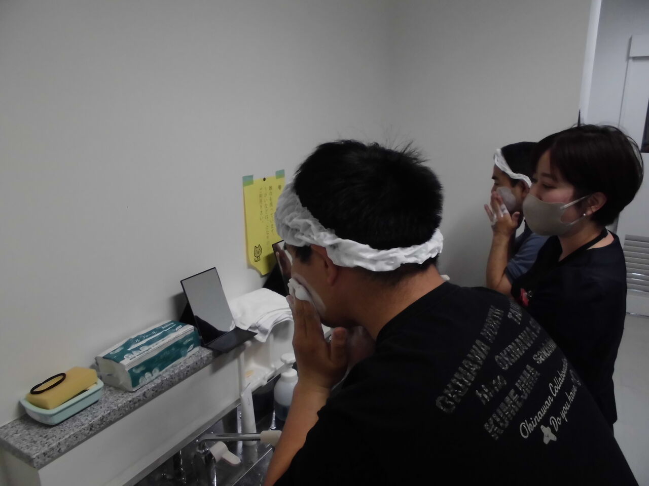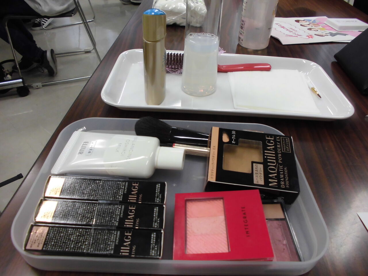 (スキンケア後にメーキャップ。みんな真剣です♪)