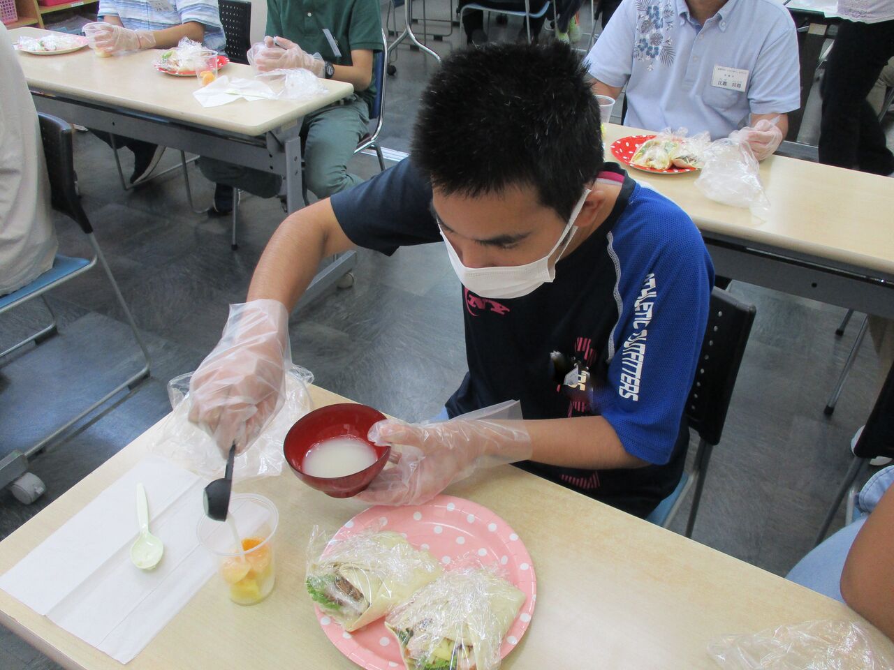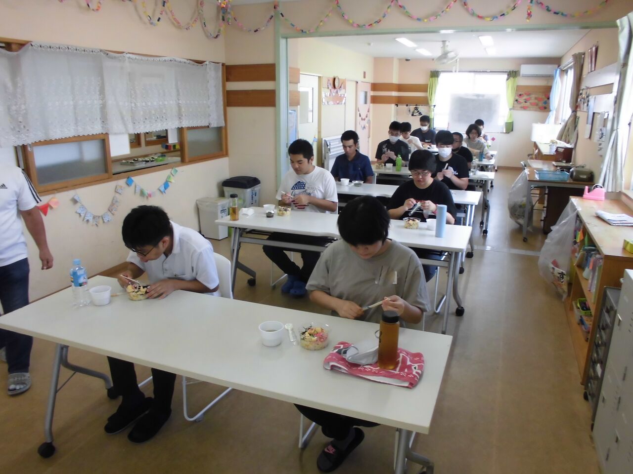 (お昼の時間。みんな揃って「いっただきま~す」。)