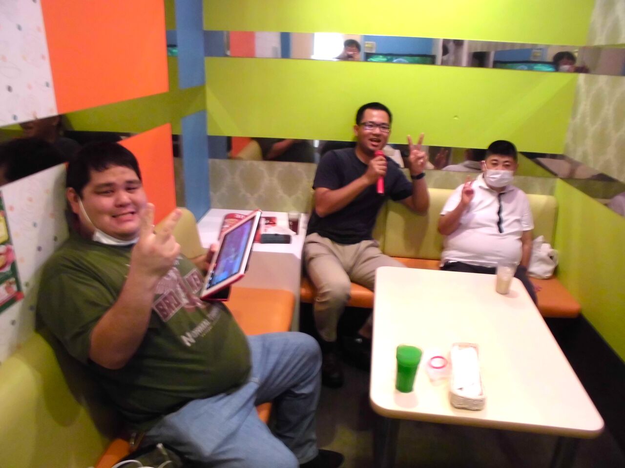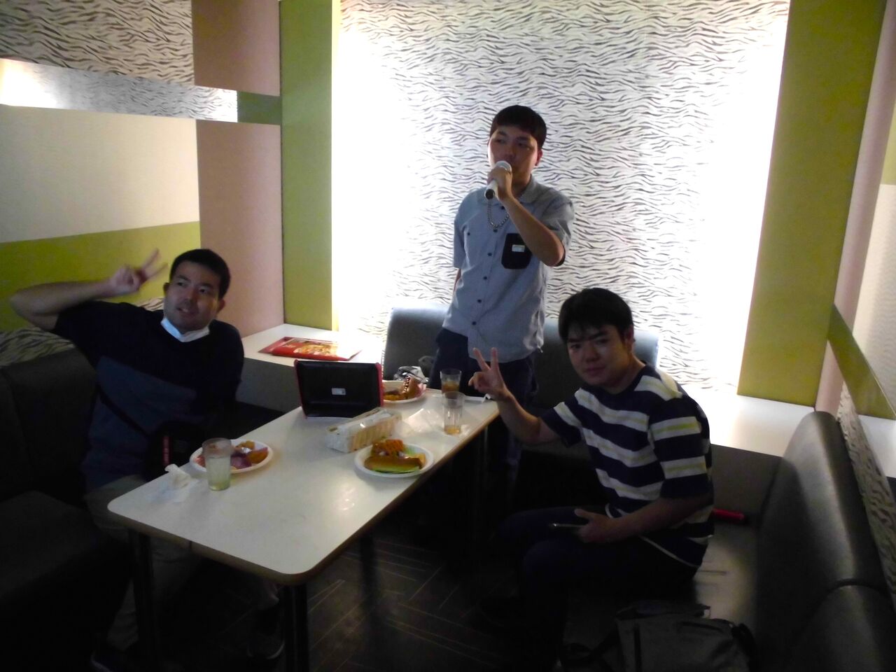 (順番を決めて歌ってます。「カラオケ楽しいで~す!」)