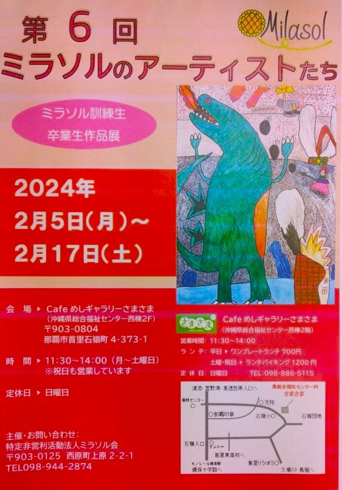 ②2/5(月)~2/17(土):「ミラソルのアーティストたち展」(カフェギャラリーさまさま)