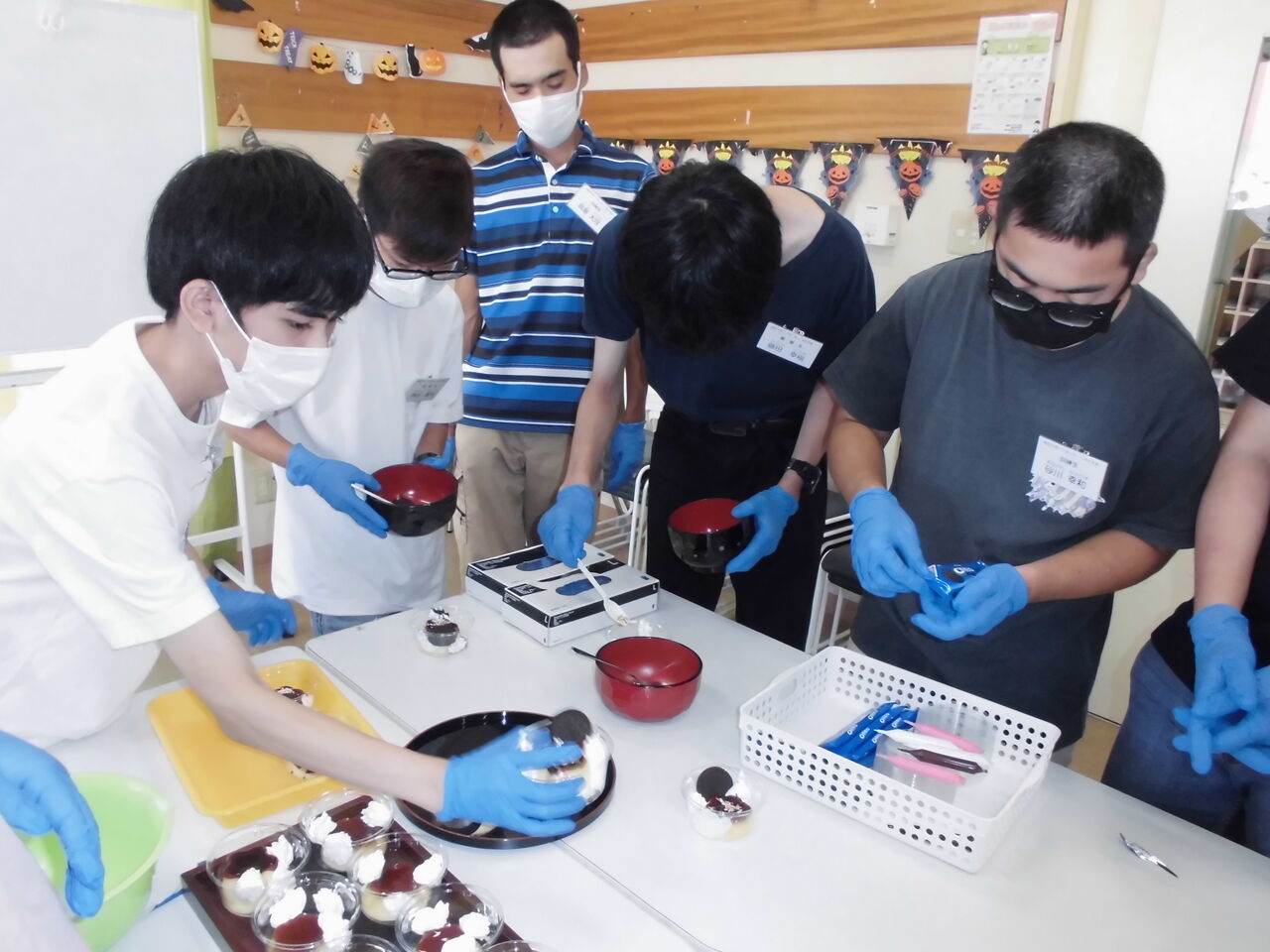 2023年10月13日 さんふらわぁデー(中城) 令和5年10月13日(金)自立サポートセンターみらそるにてさんふらわぁデーを開催しました。始めるぞ~!オー午前中は昼食作りを行いました。メニュー★チキンカレー★シーザサラダ★ハロウィンパフェ★ハロウィンサイダーメインのチキンカレーを盛り付け中シーザーサラダ担当ハロウィンパフェを作っていますハロウィンサイダーに入れるゼリーと杏仁豆腐を盛り付け中完成いただきます午後のレクリエーションは的あてゲームを行いました。高得点までエイッッ最後は皆で島人ぬ宝とあの素晴らしい愛をもう一度を歌いました。さんふらわぁデーは2カ月に1回、利用者や職員の交流を目的に開催しています。次回のさんふらわぁデーは12月です。 カテゴリなしの他の記事 < 前の記事次の記事 > コメント コメントフォーム 名前 コメント 記事の評価 リセット リセット 顔 星 情報を記憶 コメントを投稿する